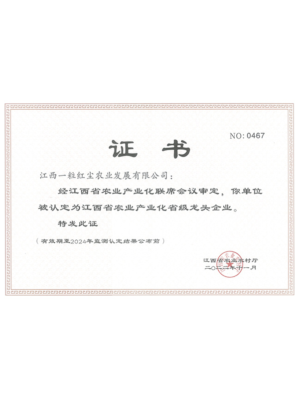 通過(guò)一系列扎實(shí)有效的工作措施,我們企業(yè)(江西一粒紅塵農(nóng)業(yè)發(fā)展有限公司)在農(nóng)產(chǎn)品質(zhì)量安全方面取得了顯著成效。未來(lái),我們將繼